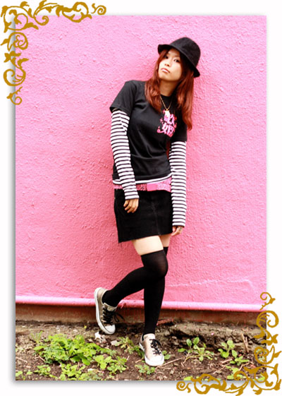 インにボーダーロンTを重ねてロックガールのできあがり♪