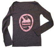(左)襟のあいた女のコらしいかたちの「ケーキ禁止ロンT」はデニムパンツで元気さをプラス。