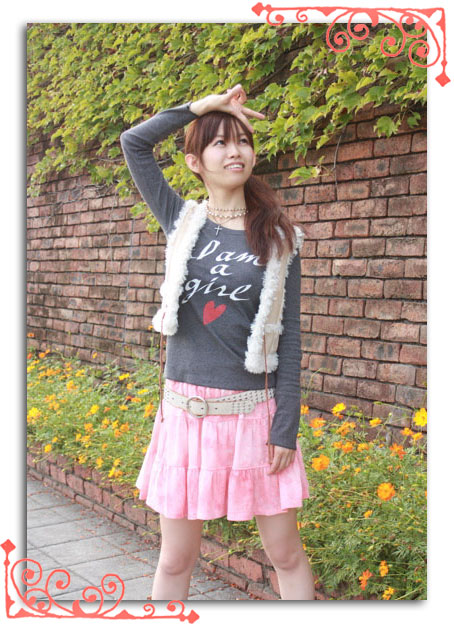 ピンクのティアードスカートと合わせてガーリーな着こなしに♪