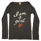 "I am a girl"の手描き風ロゴプリントの長袖カットソー。