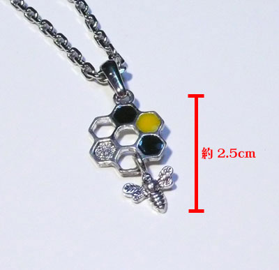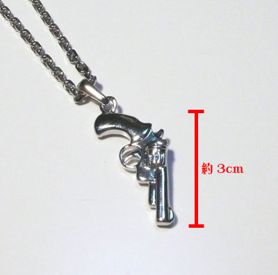 インパクト大のドクロ、ピストルとかわいいみつばちのネックレス。