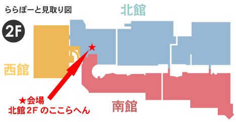 というテナントでの開催です。場所は北館の2Fで、南館と繋がっている通路にあります。